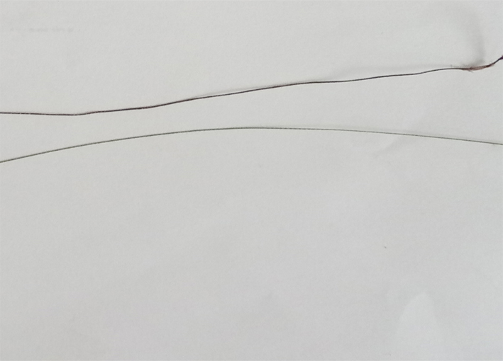 De bovenste is dus de lijn die een half jaar is gebruikt en waar de coating en kleur al grotendeels van verdwenen is.